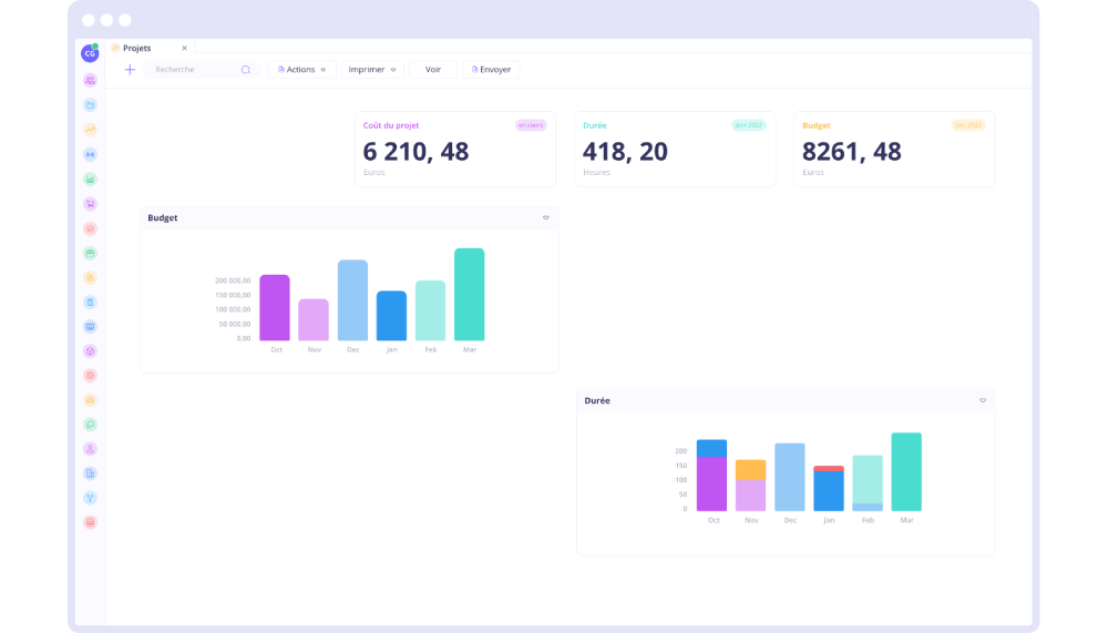 Pilotez efficacement vos projets de bout en bout : suivi des missions, allocation des ressources, gestion des délais et des coûts. Facture efficacement et suivez la rentablité en temps réel.