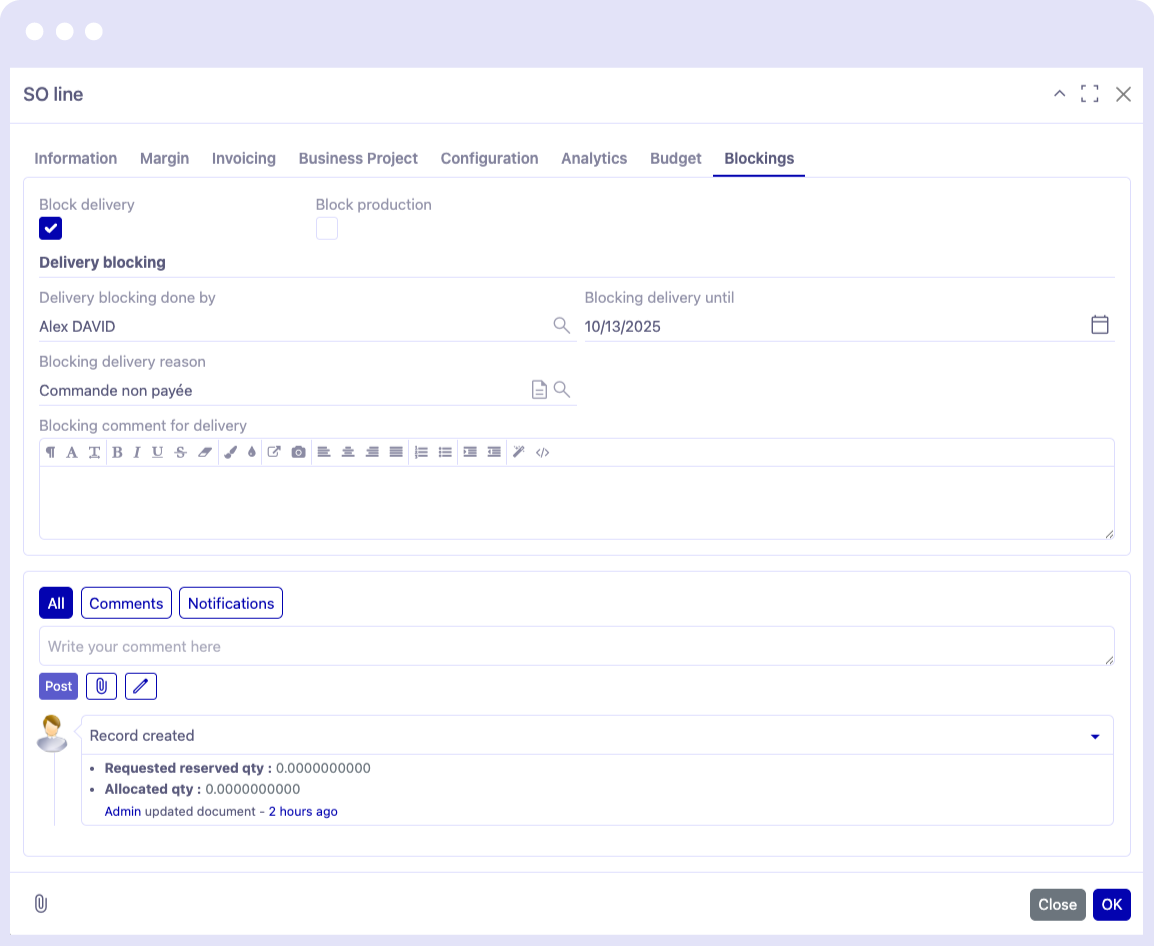 It is now possible to enable a configuration that separates the workflow of quotes and sales orders in order to select only certain lines in a quote. This way, it is possible to generate multiple orders from a single quote.