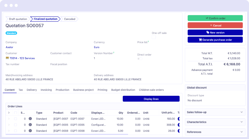 This new feature allows you to define shipping rates that apply according to classification rules (e.g., weight, order price) and result rules (rates to be applied). When creating a quotation, these rates allow you to automatically calculate the cost and delivery time according to the configured rates.